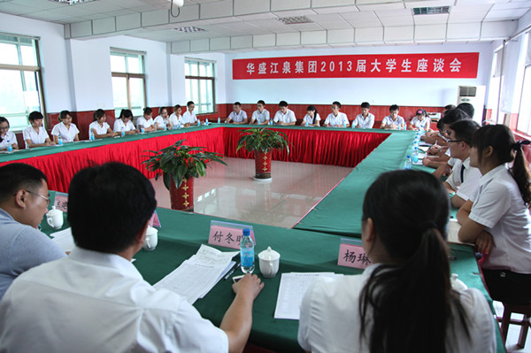 會上,首先由華盛江泉集團人力資源部主任李新勝對大學生的主要工作情況進行了簡要介紹。隨后參會大學生圍繞自身成長經(jīng)歷,結(jié)合當前基層工作情況展開熱烈討論,積極建言獻策,分別從大學生檔案的管理、企業(yè)文化等方面進行了交流探討,并提出了發(fā)展建議。各位領導針對員工在工作中的疑問和建議逐一進行了解答。座談氣氛熱情洋溢、和諧融洽,充分展現(xiàn)了公司高層領導傾聽基層心聲、注重人文關(guān)懷的管理理念和員工求真務實、敬業(yè)愛崗的精神風貌。